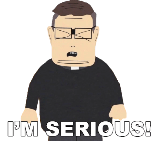 Father Maxi from South Park declares "I'm Serious!" with a stern and surprised expression, emphasizing his earnestness.
