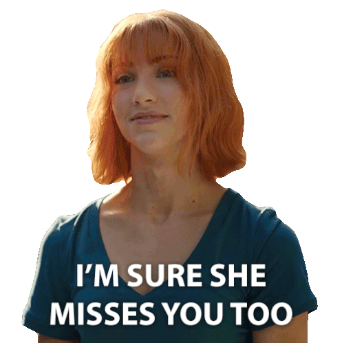 a woman in a blue shirt says i 'm sure she misses you too