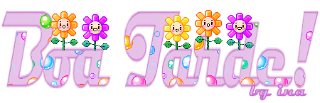 Animated sticker featuring the Portuguese phrase 'Boa Tarde' with cute smiling flowers and colorful bubbles.