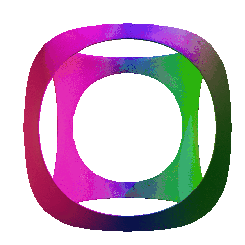 Abstract, colorful looping animation of morphing rounded squares and rings, created with Blender.