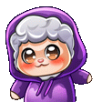 Inanimatesheep, the cute chibi sheep character, wiggles playfully while wearing a cozy purple hoodie.