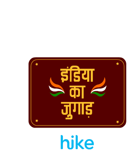 Animated sticker featuring a 'India Ka Jugad भारतकाजुगाड़' sign with Indian flag colors and the 'hike' logo.