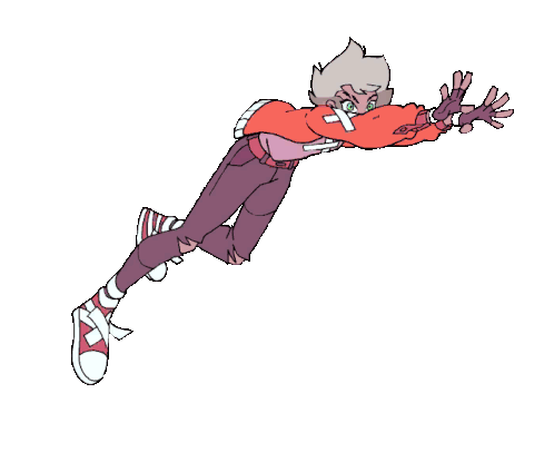 Jj from Infinite Guitars is captured mid-air in a dynamic dodging or rolling action, ready for adventure.