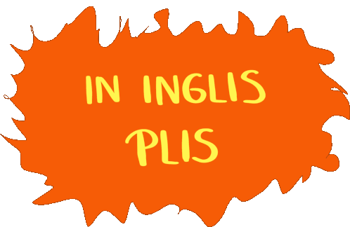 A vibrant pink splash appears with the text 'In Inglis Plis' which then corrects to 'In English Please'.