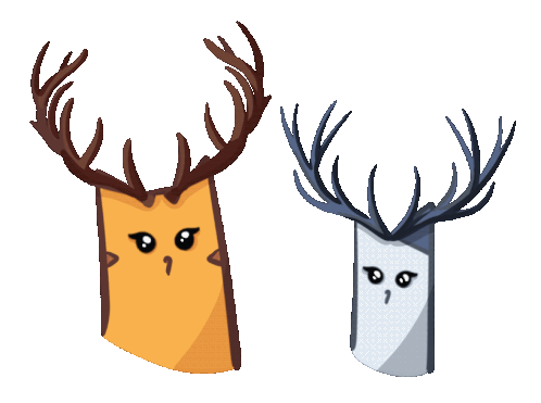 a cartoon drawing of a deer and a tree with antlers