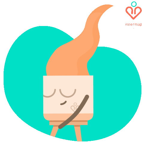 Animated Inner Map torch character meditating, symbolizing mindfulness, presence, and inner peace for mental well-being.