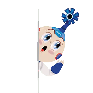 a cartoon character with a hat that says intel