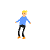 A pixel art man in a blue shirt and black pants stands, representing the concept of intellectual stupidity.