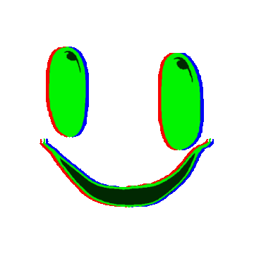Animated sticker of a glitchy, chromatic aberration smiley face, associated with Interminable Rooms U-55.
