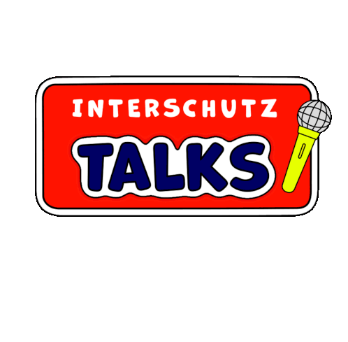 A dynamic logo for Interschutz Talks, featuring a director's chair and microphone, symbolizing interviews and discussions.