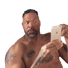 David William Watts reacts humorously to his smartphone, showing surprise, eating while scrolling, and pointing with a stick.