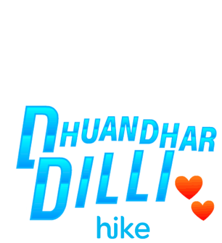 A vibrant blue logo featuring 'Dhuandhar Dilli' and 'hike' text with two hearts, representing IPL 2020 and Delhi Capitals.