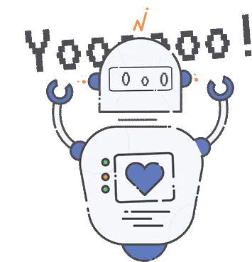 An Iranserver blue bot sticker featuring heart-shaped eyes and a prominent blue heart displayed on its chest.