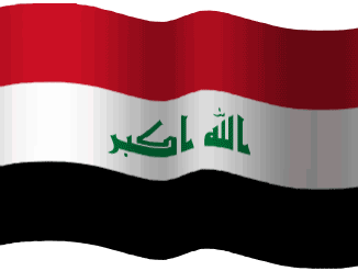 a red white and black flag with green writing