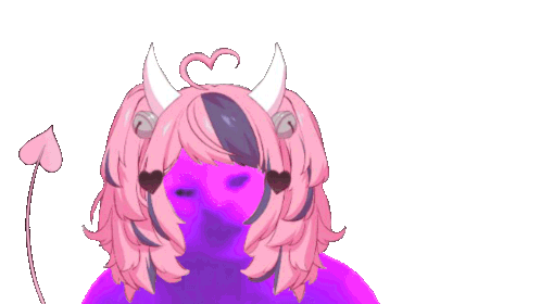 a drawing of a girl with horns and pigtails on a purple background