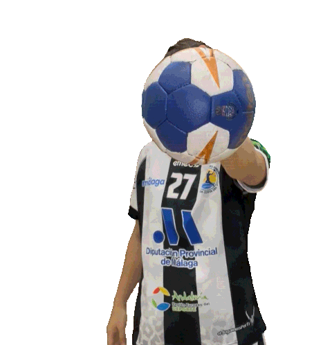 Isabelle Medeiros, number 27, celebrates with a handball, showcasing her excitement and energy on the court.
