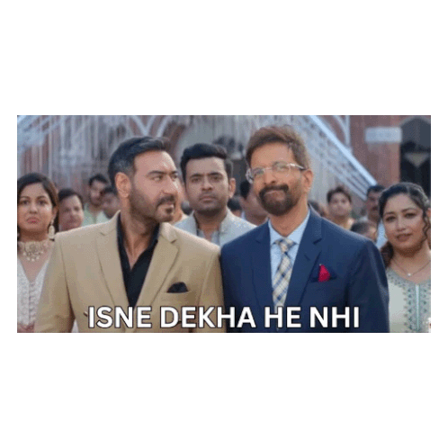 two men in suits are standing next to each other with the caption " isne dekha he nhi "