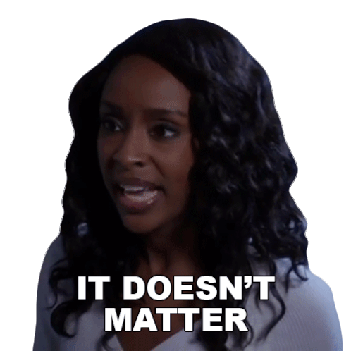 Karen Mott, played by Ebony Obsidian, dismissively states 'It Doesn't Matter' with a slight shrug.