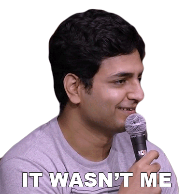 Kenny Sebastian humorously denies responsibility, saying 'It wasn't me' into a microphone.
