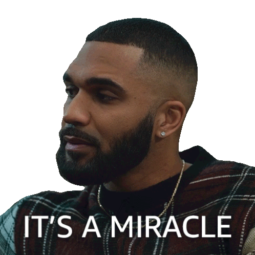 Ian Walker, from Amazon Studios' Harlem, expresses surprise with the caption 'It's a Miracle' in this animated sticker.