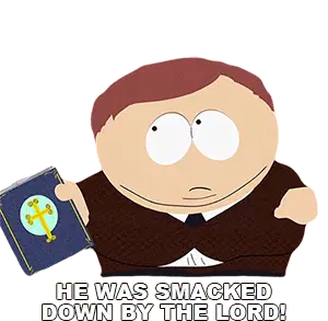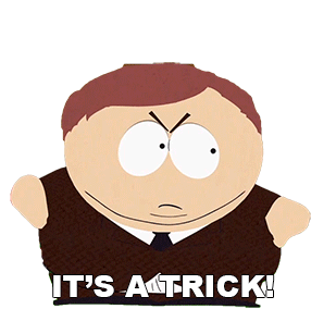 Eric Cartman from South Park, looking angry and pointing, warns "It's a trick!" expressing suspicion and deceit.