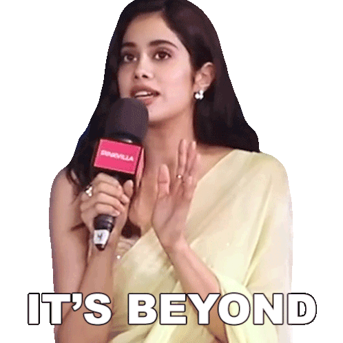 A woman from Pinkvilla expresses 'It's beyond anything' while holding a microphone, conveying strong emotion.