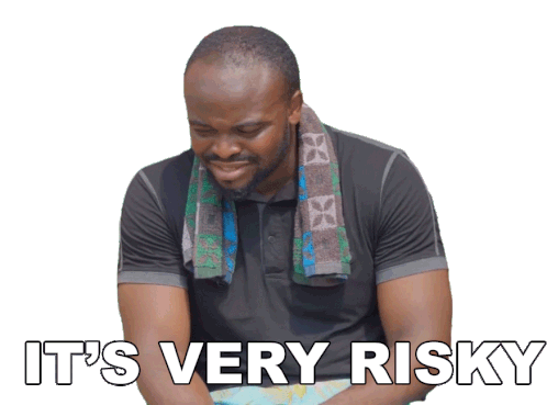 Kbrown from Mark Angel Comedy expresses 'It's Very Risky' with a concerned and hesitant look.