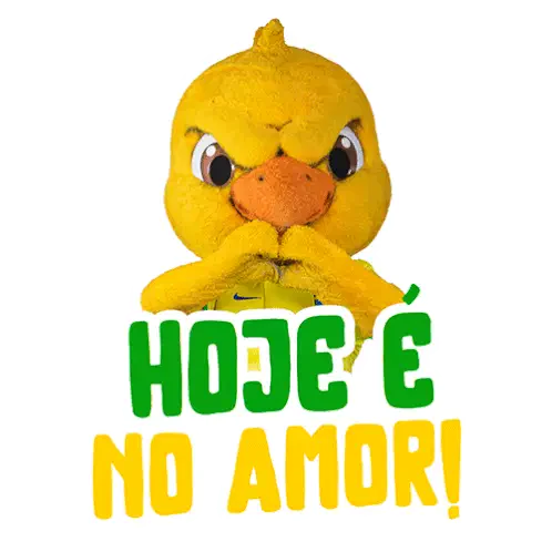 a yellow duck mascot holding a cell phone with the words zap do canarinho