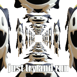 Jack Frost from Megaten creates a dizzying tunnel effect, challenging viewers with the text 'just try and run'.