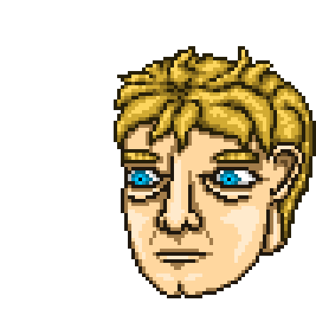 Pixel art sticker featuring Jacket from Hotline Miami, with a surprised expression on his face and blonde hair.