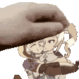 Jami Pat, a yellow pixelated dog character, is held up in a framed picture by a hand.