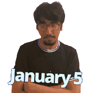 a man wearing glasses and a black shirt with the words january 5 written on it