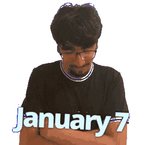 a man wearing glasses and a black shirt with the words january 7