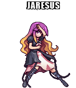 Jaresus, a pixel art character resembling Byakuren Hijiri, strikes a dynamic pose in this animated sticker.