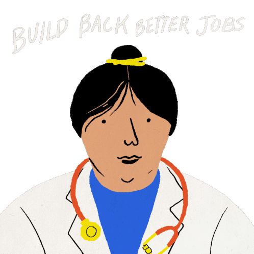 Jennyscales_ sticker featuring diverse workers like a doctor, student, and farmer, promoting 'Build Back Better Jobs With Unions' and the Pro Act.