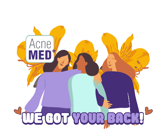 Acnemed sticker featuring three women embracing, with the empowering message 'We Got Your Back!' for acne care support.