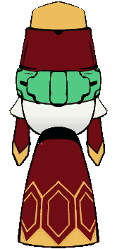 a cartoon drawing of a person wearing a red dress and a green scarf