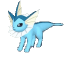 A cute pixel art animation of Vaporeon, the water-type Pokémon, jiggling playfully with its fins and tail.