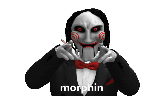 The Jigsaw doll from Saw points and features morphing text that changes from 'LOSERS' to 'WINNING' to 'BYE BYE'.