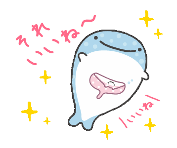 Jinbesan, the adorable whale character, shows off a smaller whale inside its belly with a cheerful 'That's nice!' message.