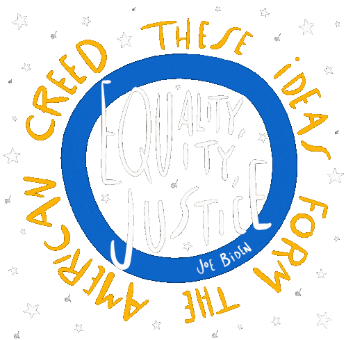 An animated sticker featuring a quote from Joe Biden about the American Creed, emphasizing equality and justice, with rotating text.