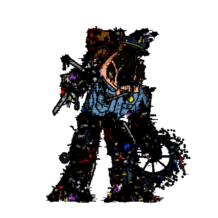 Joe Swanson from Family Guy appears as a Pibby-style glitched character in this animated sticker.