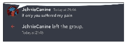 JohnieCanine posts 'only you suffered my pain' before dramatically leaving a group chat, captured in a screenshot.