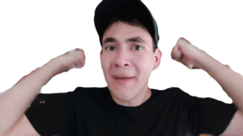 A smiling man in a cap gives two enthusiastic thumbs up, expressing approval or agreement.