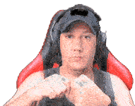 Joia, a person in a gaming chair, transitions from a determined pose to a cheerful thumbs-up, showing approval or encouragement.