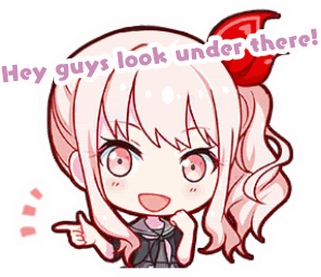 a cartoon of a girl with a red bow and the words hey guys look under there