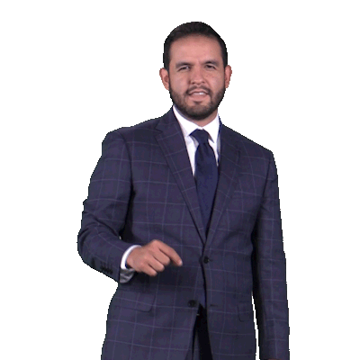 a man in a suit and tie is pointing at the camera with a fox deportes sign behind him