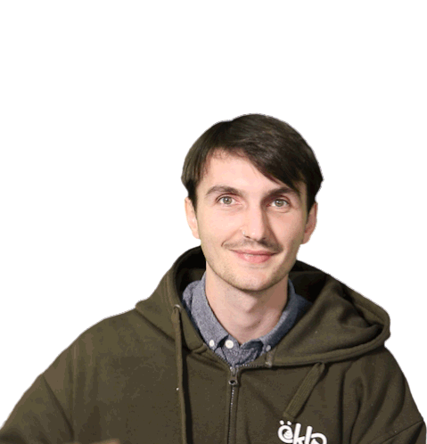 Joshi smiles and makes a peace sign with both hands, wearing a dark hoodie, against a white background.