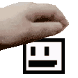 A pixelated hand holds a Juck Box, a square with a winking smiley face, in this cute animated sticker.