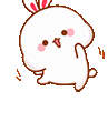 A cute white cartoon bunny happily jumping up and down with expressive movements and pink cheeks.
